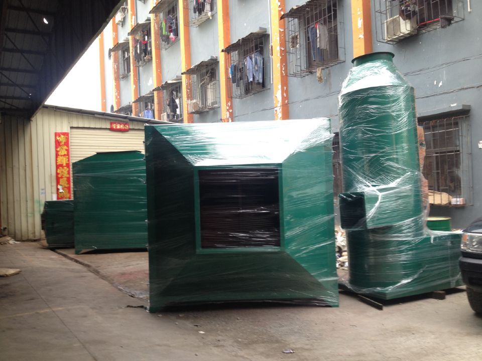 深圳機電設備公司的活性炭吸附+漆霧過濾設備、活性炭吸附塔、旋流板塔完工啦!