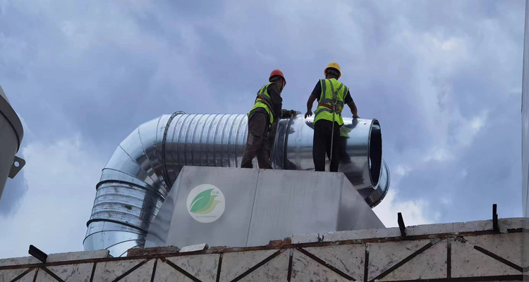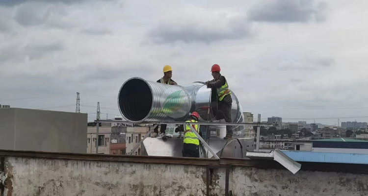 東莞市某科技有限公司廢氣處理工程管道安裝現場